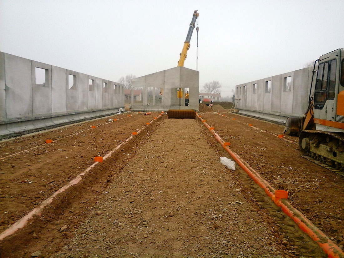Lo svolgimento di tali lavorazioni richiede una estrema precisione nel tracciamento delle fondazioni per il perfetto inserimento delle strutture prefabbricate.